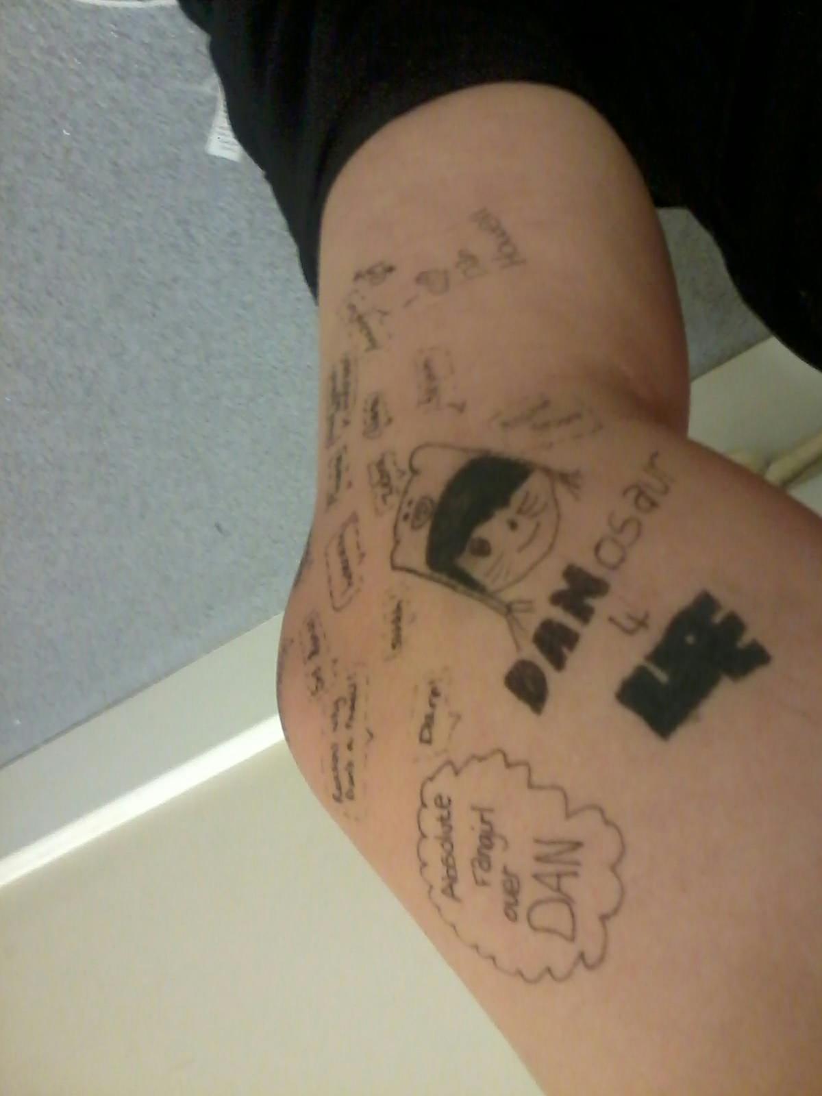 But that is not all. There is one true sign of a major fangirl. Drawing on yourself. And I'm ashamed. No, really. Desperately ashamed. Lemme copy and paste my pic I put on twitter.